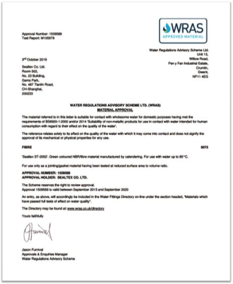 SEALTEX ST-2052 certificate WRAS